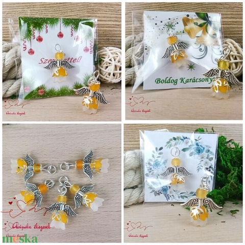 Angyalka medál narancs 5 db-os csomagban ajándékkártyával karácsonyi apróság kollégának osztálytársnak vendégnek