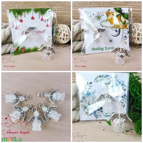 Angyalka medál fehér 5 db-os csomagban ajándékkártyával karácsonyi apróság kollégának osztálytársnak vendégnek