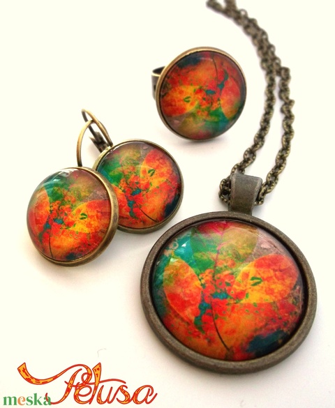 Anna részére nyaklánc+ fülbevaló Leveles falevél színes nyaklánc fülbevaló gyűrű szett őszi