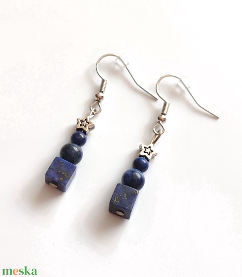 Lapis lazuli - krizokolla kék ásvány fülbevaló, egyedi ásványfülbevaló, csillagos fülbevaló
