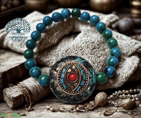 Kiegyensúlyozottság és boldogság karkötő harmadik szemmel, krizokolla ásvánnyal