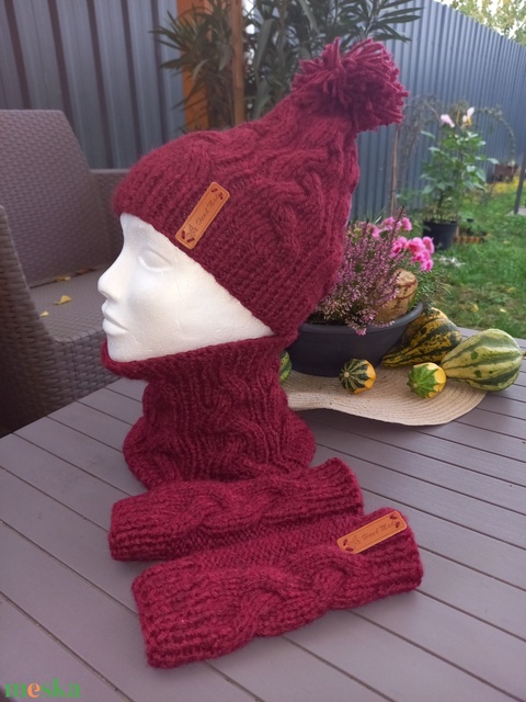 Kezzel kötött sapka, nyakmelegitő, kézmelegítő