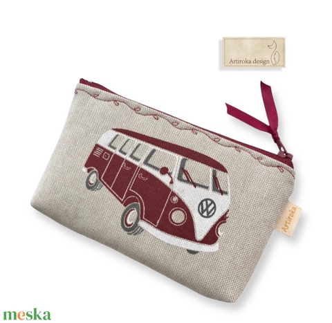 Retro Volkswagen busz mintás, irattartó pénztárca - bordó - Artiroka design