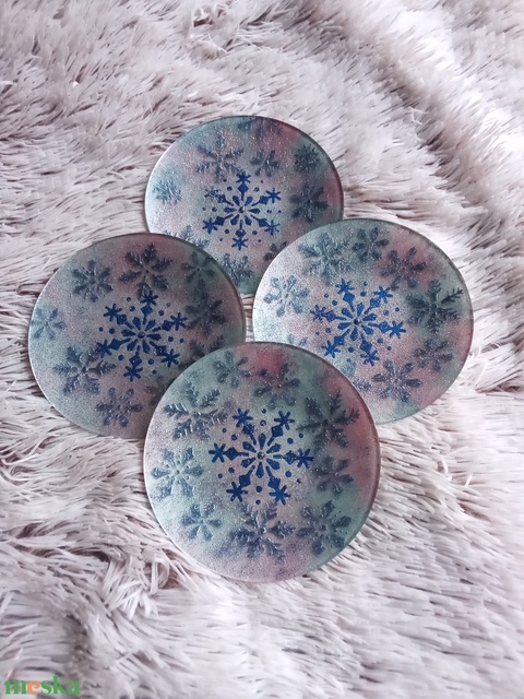 Kék-ezüst mécsestartó szett - egyedi festett üveg mésestartó tálka 4db