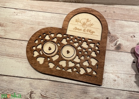 Esküvői gyűrűtartó, gyűrű mintákkal