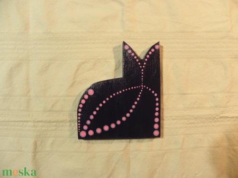 Kék, lila cica figura - Egyedi, naiv stílusú festett fa
