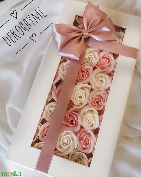 - Anyaga: papír doboz, hab rózsa, selyem szalag
