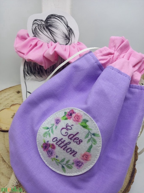 Lila "Édes Otthon" Neszesszer + hajgumi