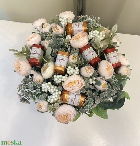 Csoki Marcipán és boglárka virágbox, virágcsokor asztaldísz, virágdoboz , virágbox