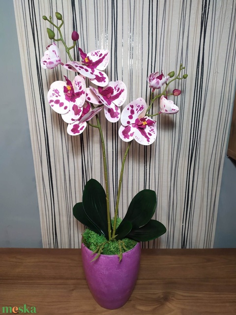 Élethű orchidea, lila kaspóban