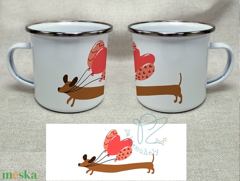 Valentin napi Tacskós Zománc Bögre - Hosszú Tacskó Lufikkal