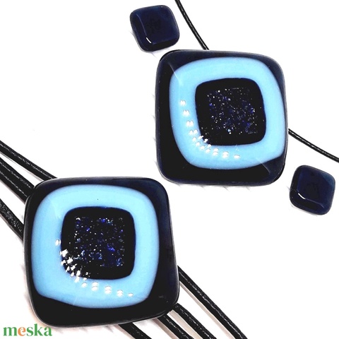 AKCIÓS! - Farmerkék szikrázás absztrakt üveg medál, karkötő, gyűrű és fülbevaló, üvegékszer szett