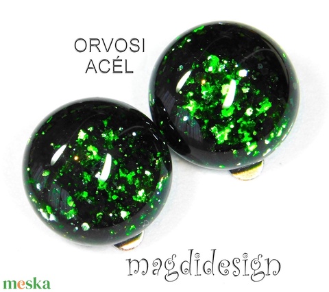 MAXI Zöld aventurin fülklipsz üvegékszer ORVOSI ACÉL