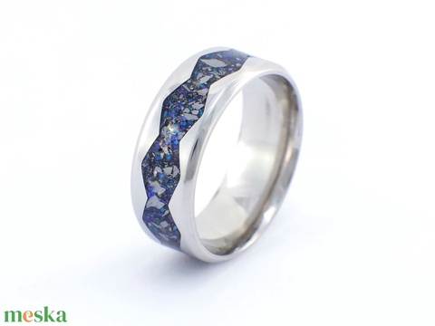 Nemesacél Gyűrű Krizokolla, Antimonit Ásvánnyal És Kék Opállal. Vízálló, Karcálló, Anti-Allergén, Egyedi Megrendelésre!