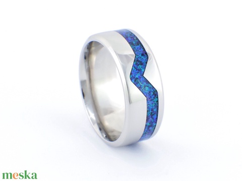 Nemesacél Gyűrű Kék Opállal. Vízálló, Karcálló, Anti-Allergén, Egyedi Megrendelésre!