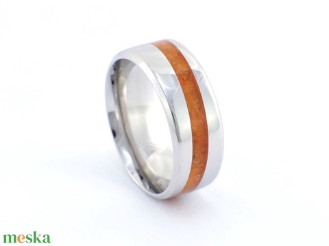 Nemesacél Gyűrű Borostyán Ásvánnyal. Vízálló, Karcálló, Anti-Allergén, Egyedi Megrendelésre!