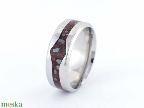 Nemesacél Gyűrű Mahagóni Obszidián És Hematit Ásványokkal. Vízálló, Karcálló, Anti-Allergén, Egyedi Megrendelésre!