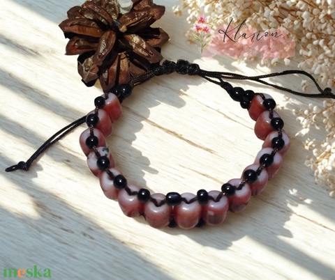 Energia karkötő burgundi színű, hengeres és fekete kása gyöngyökből