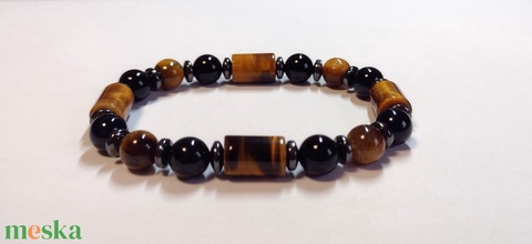 Tigrisszem-achát-hematit ásványkarkötő