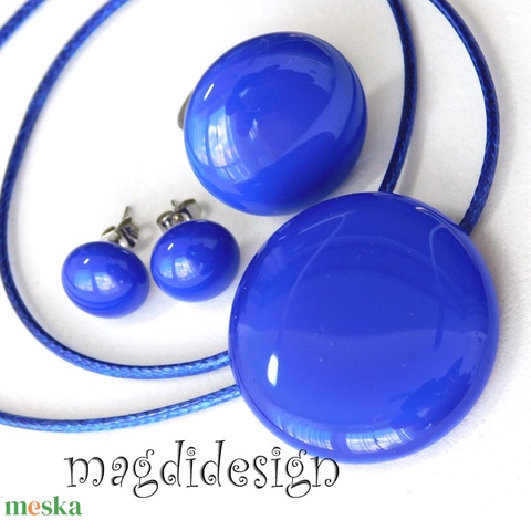 Királykék üvegékszer szett, nyaklánc, gyűrű, pötty fülbevaló