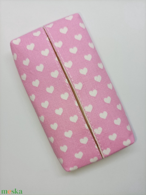Rózsaszín apró szívecskés-bélelt papírzsebkendő tartó