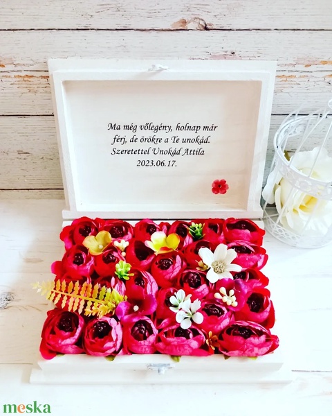- Technika: decoupage, transzfer és szalvétatechnika, virágkötés