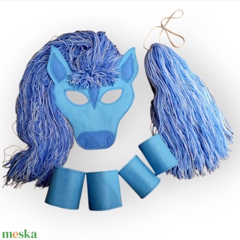 A lóálarcon a sörényt fonalból jó hosszúra hagyom, akár össze lehet fonni a gyermek hajával, vagy ha tűl hosszú le is lehet vágni a végéből.