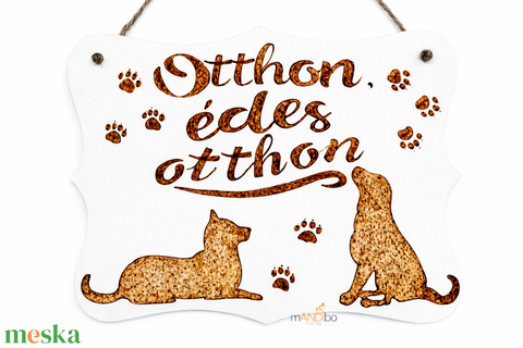 Otthon édes otthon kutyás kopogtató - pirogravírozott képecske