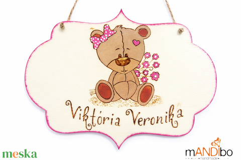 Macis gyerekszoba ajtajára készült pirogravírozott kép