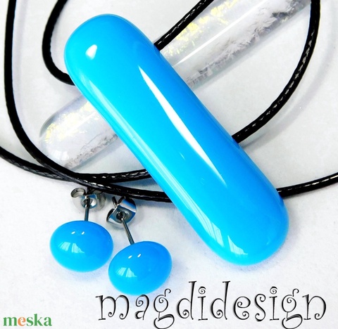 MAXI Élénk kék üvegékszer szett, nyaklánc, pötty fülbevaló