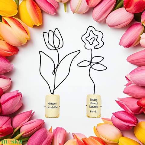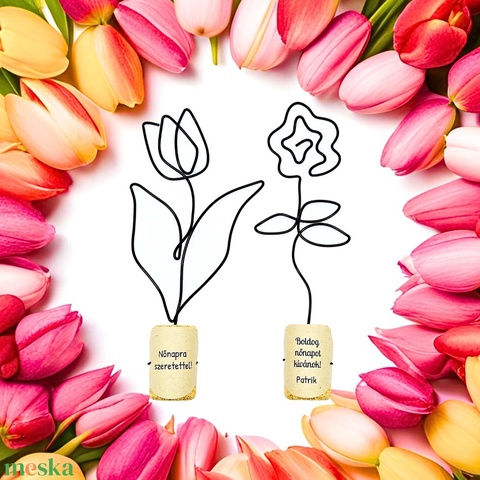 Kis drótvirágok hölgyeknek, kislányoknak, ovisoknak- Nőnapra szeretettel - Tulipán, rózsa - egyedi nőnapi ajándékötlet