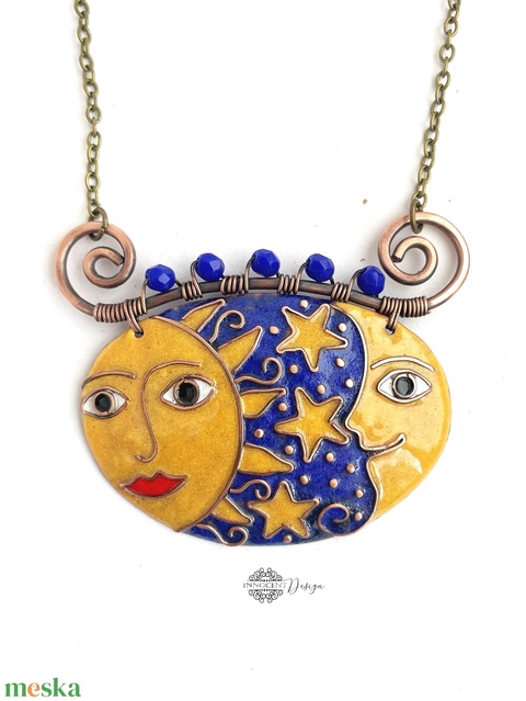 - Anyaga: vörösréz, ékszerzománc, lápisz lazuli, jáde, antikolt szerelék