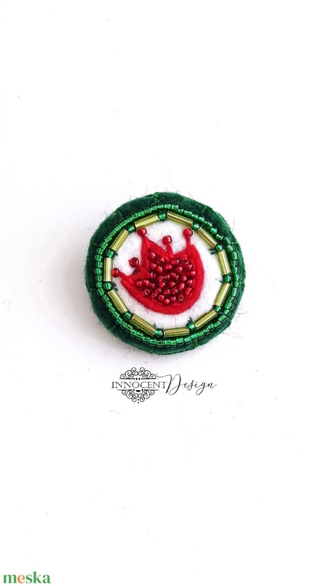 - Anyaga: gyapjúfilc, cérna, gyöngy, flitter, kitűzőalap
