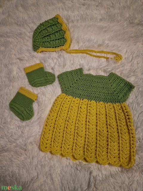 Horgolt kisbaba/lány szett sárga/zöld színben