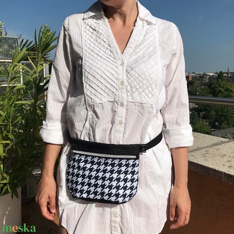 Fekete Fehér Kockás Tyúklábmintás Vízálló Övtáska