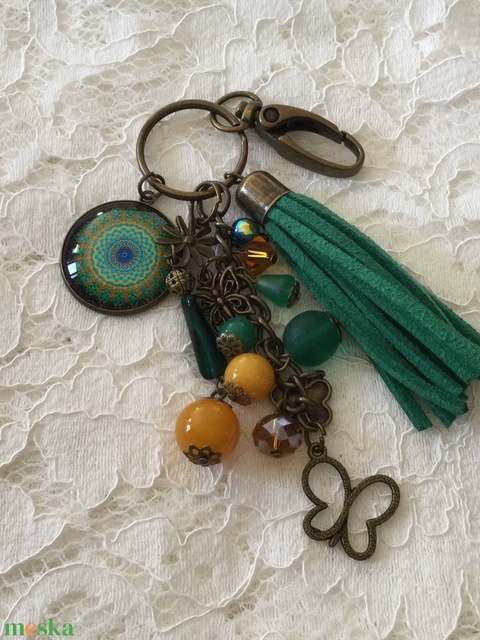 Türkiz zöld-napsárga kulcstartó,táskadísz