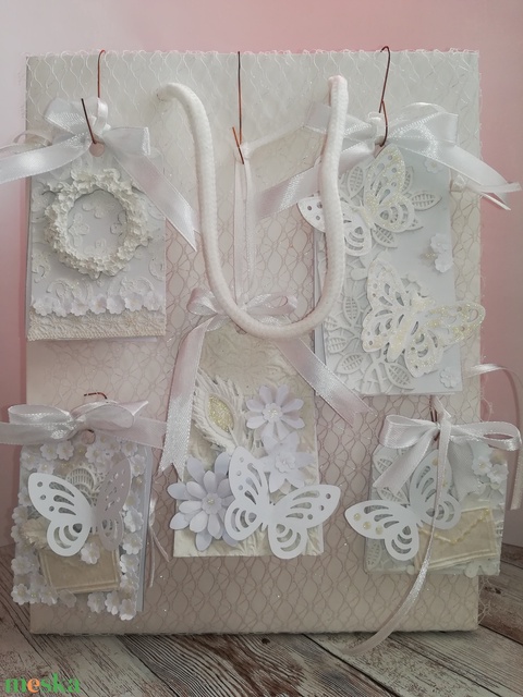 - Anyaga: papír, gesso, szaténszalag, csipkeszalag, glitter
