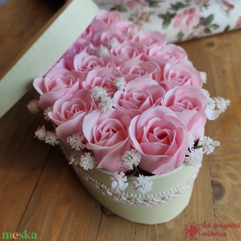 - Anyaga: szappanrózsa, selyemvirág, doboz