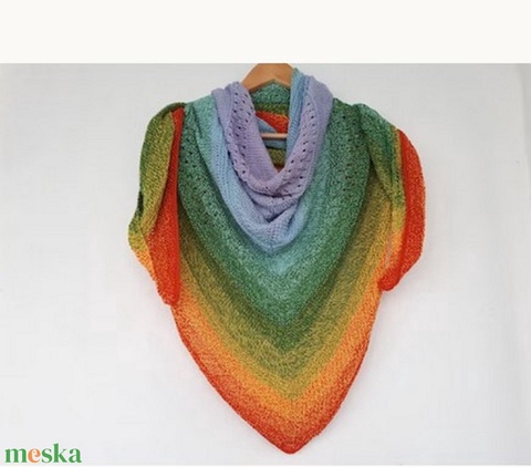 Kötött szivárványos kendő. Gyönyörű sálként használható. Háromszög alakú. Szállításra kész