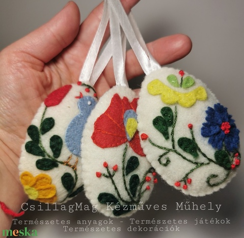 HÍMZETT RÁTÉTEKKEL DÍSZÍTETT SZÍNES HÚSVÉTI TOJÁSOK CSILLAGMAG-DEKORÁCIÓ 3 DB/SZETT TERMÉSZETES ANYAGOKBÓL GYAPJÚFILC