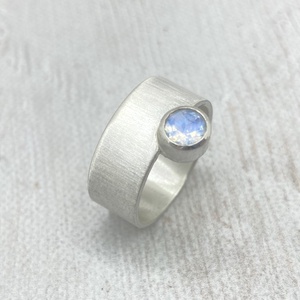 Modern ezüst gyűrű szivárvány holdkővel
