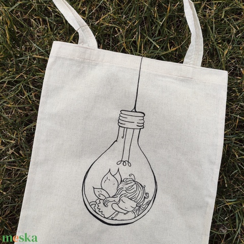 lámpás tündér, aranyos kézzel festett natúr vászontáska