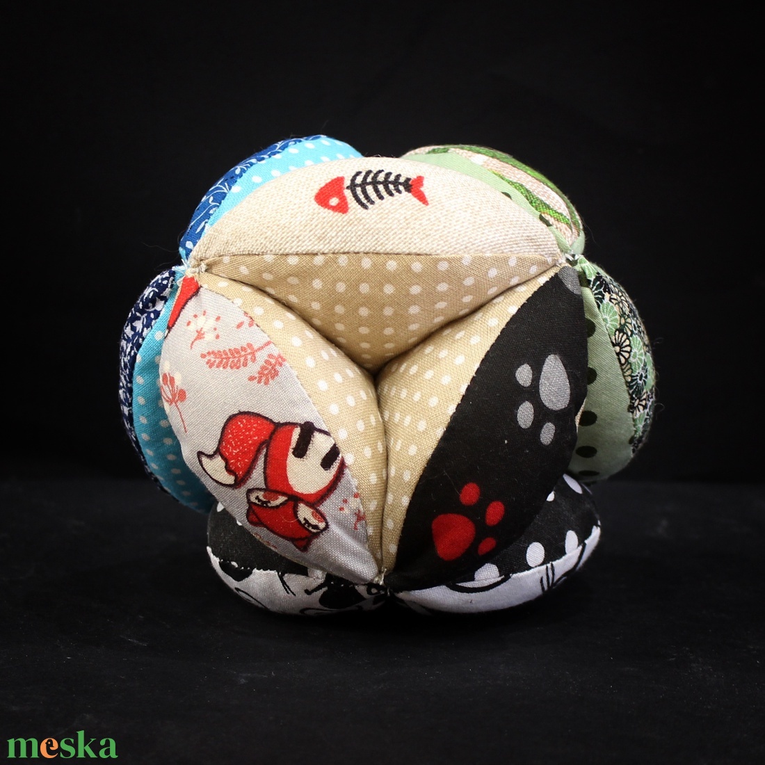 A Montessori labda pamutvászonból készült, antiallergén szilikongolyóval töltött puha játék, csörgővel!