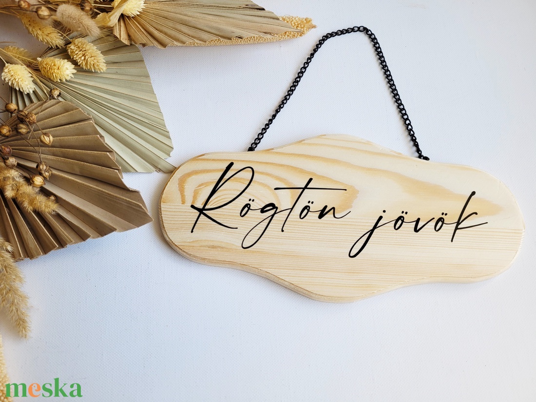 Nyitva zárva tábla, Rögtön jövök, Fa, Festett vagy Natúr