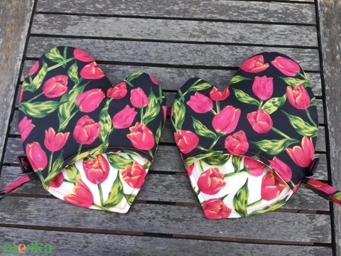 Edényfogó , piros tulipánok
