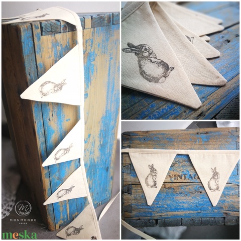 Z á sz l ó f ü z é r - natúr tavaszi nyuszis girland dekoráció