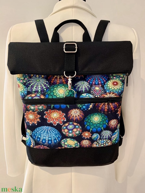 Rolltop Fekete-mandala mintás-Vízálló-Hátizsák-Hátitáska