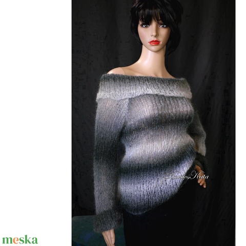"MARLENE"MOHAIR-PULCSI - exkluzív kézzel kötött pulóver / szürkék
