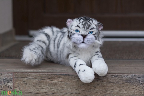 Élethű fehér tigris plüss állat, művész plüss tigris