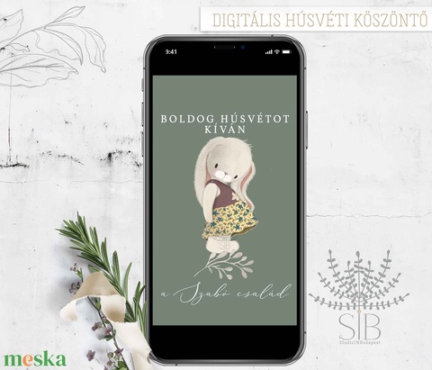 Húsvéti nyuszis telefonon küldhető digitális képeslap, letölthető húsvéti üdvözlő